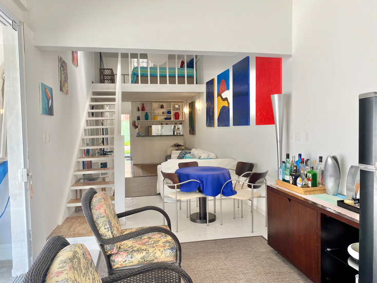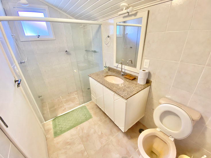 São dois quartos no térreo, sendo um quarto para 2 pessoas com cama de casal e outro para 2 pessoas com duas camas de solteiro; no andar superior, um quarto para 4 pessoas com quatro camas de solteiro. Todos os quartos têm ar condicionado.