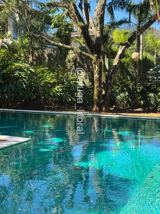 Na área externa, há uma área gourmet com churrasqueira e uma piscina privativa.