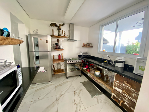No térreo, cozinha integrada às salas, piscina privativa , jardim, Jacuzzi para 6 pessoas, churrasqueira e vaga para até 3 veículos.