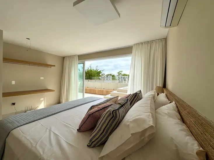 A casa possui 6 dormitórios, sendo 5 suítes e 01 quarto com banheiro social com chuveiro ao lado, acomoda até 15 hóspedes com conforto. Cada um dos 6 dormitórios conta com ar condicionado, um espaço exclusivo de home office e internet de alta velocidade.