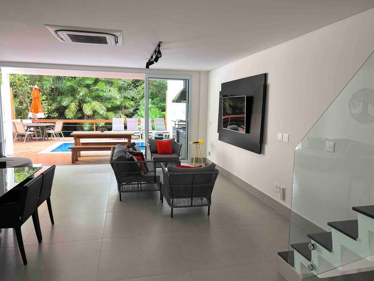 A casa possui 2 salas com TV Smart, SKY, ar condicionado em todos os ambientes.