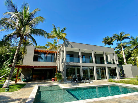 A casa tem uma vista deslumbrante da Praia de Maresias.