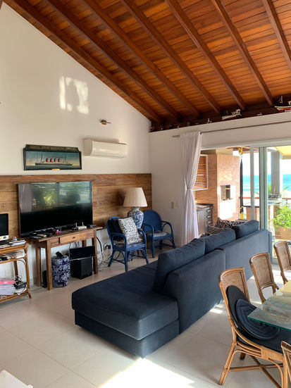 O imóvel é vista mar e está situado em um condomínio pé na areia.