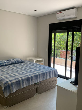 A casa conta com uma cozinha completa com todos os utensílios necessários, sala de jantar e TV integradas, lavanderia e elevador privativo.