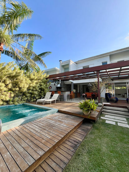O ponto alto da casa fica por conta da integração entre as áreas de lazer, gourmet, varandas e salas.